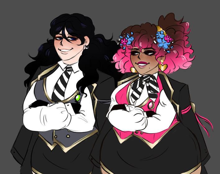 To the left we have our MC/YUU Raven Krolak. A Jade and Azul Stan. ill add more as my bestie lets me lol. Our lovely prefect belongs to @SleepyShrimpy